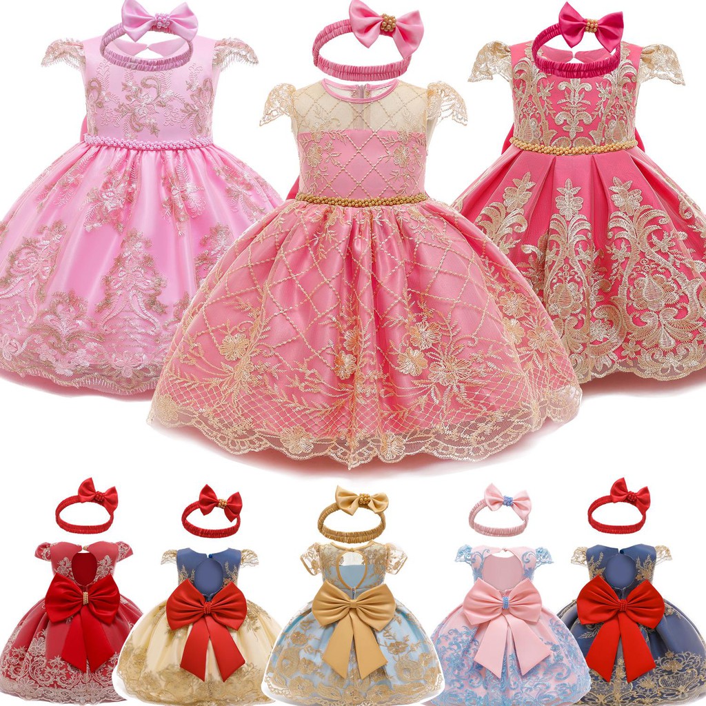 Kids Dresses For Girls 0 2 Years Old Baby Girls Birthday Dresses Cute Princess Party Dress With Freee Headband Shopee Malaysia